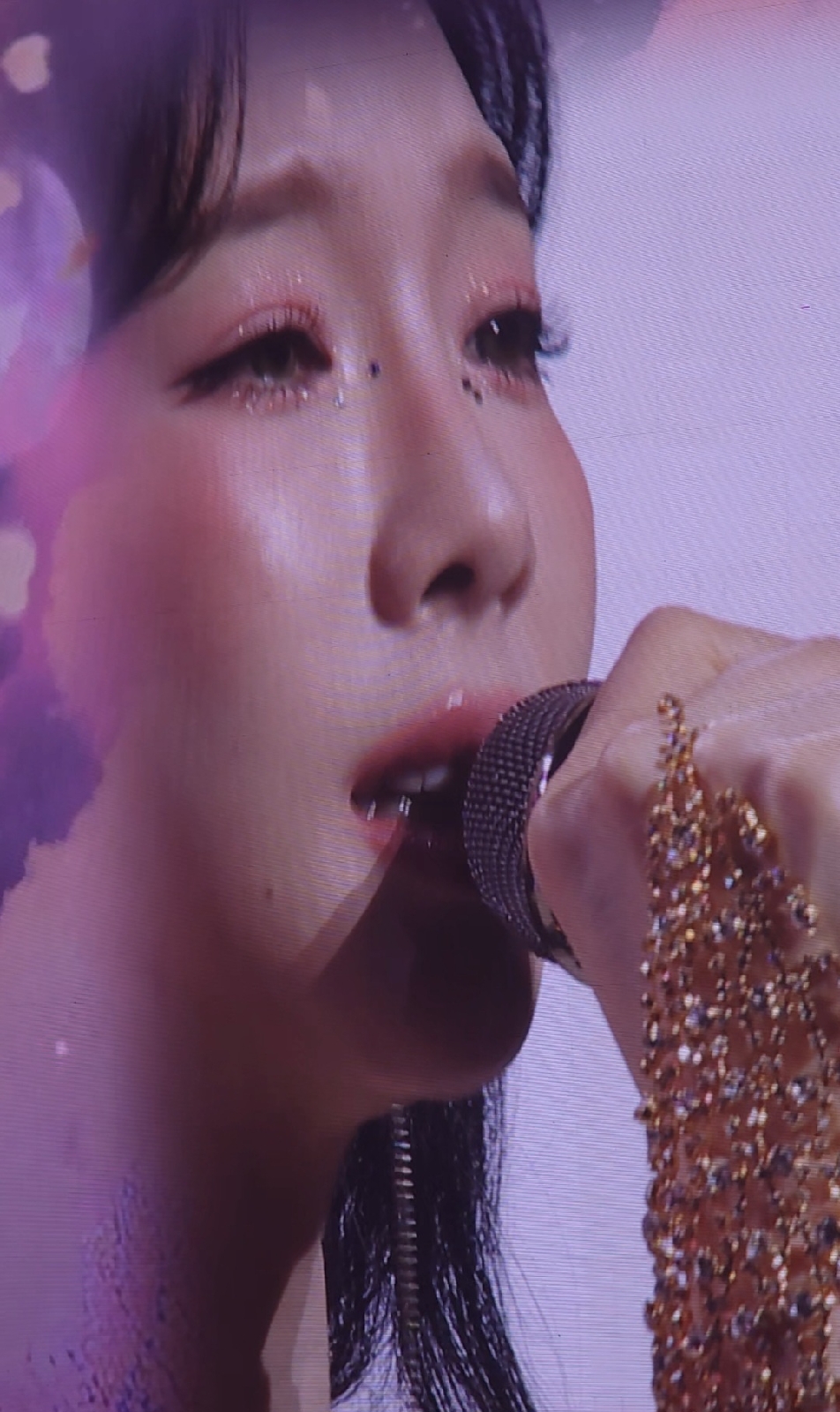 응원봉 불빛과 공연장 전체를 채운 보랏빛 조명,